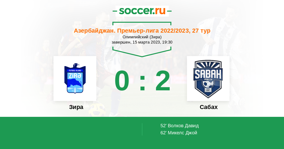 Протокол матча Зира против Сабах