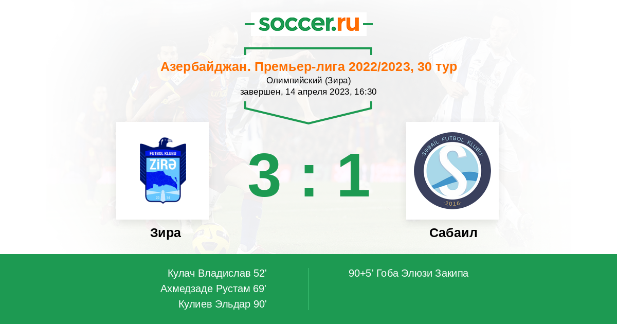 Протокол матча Зира против Сабаил