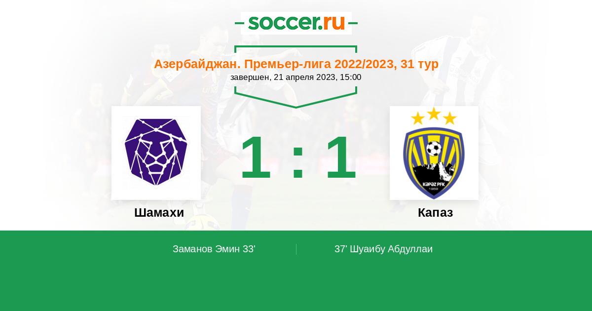 Протокол матча Шамахи против Кяпаз