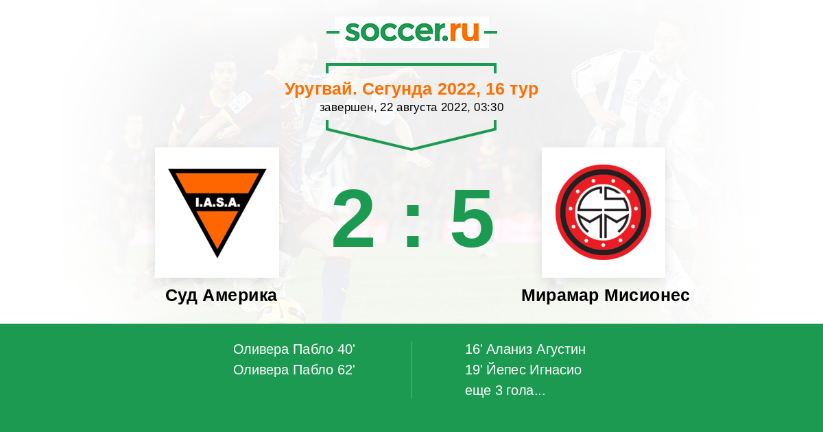 Протокол матча Суд Америка против Мирамар Мисионес