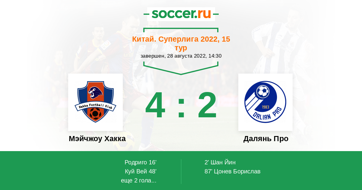 Протокол матча Мэйчжоу Хакка против Далянь Про