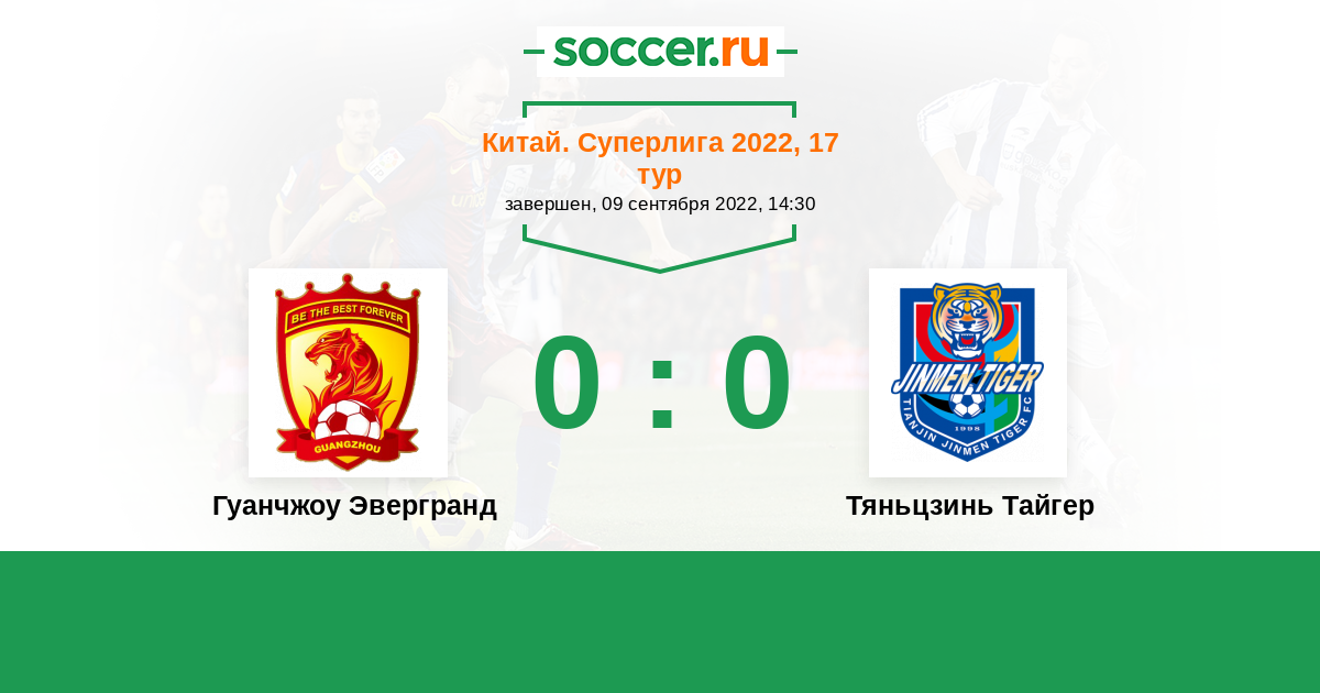 Протокол матча Гуанчжоу Эвергранд против Тяньцзинь Тайгер