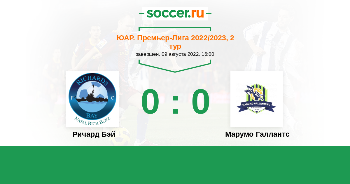 Протокол матча Ричард Бэй против Марумо Галлантс