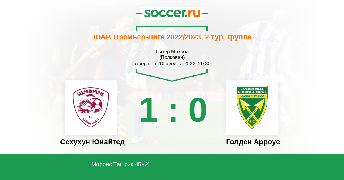 45+2' (1:0) Моррис Ташрик (12) (Летсоало Сепана (21))
