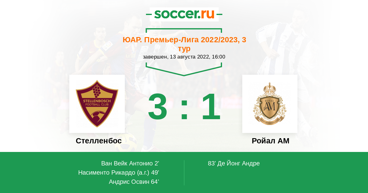 Протокол матча Стелленбос против Ройал АМ