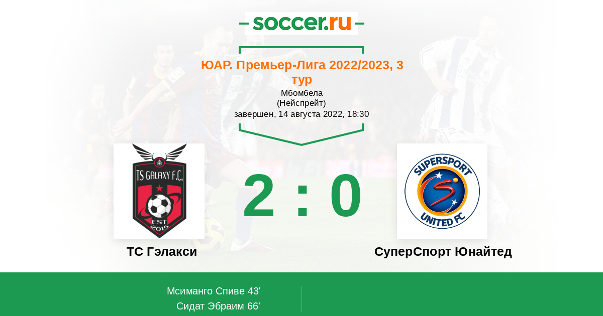 Протокол матча ТС Гэлакси против СуперСпорт Юнайтед