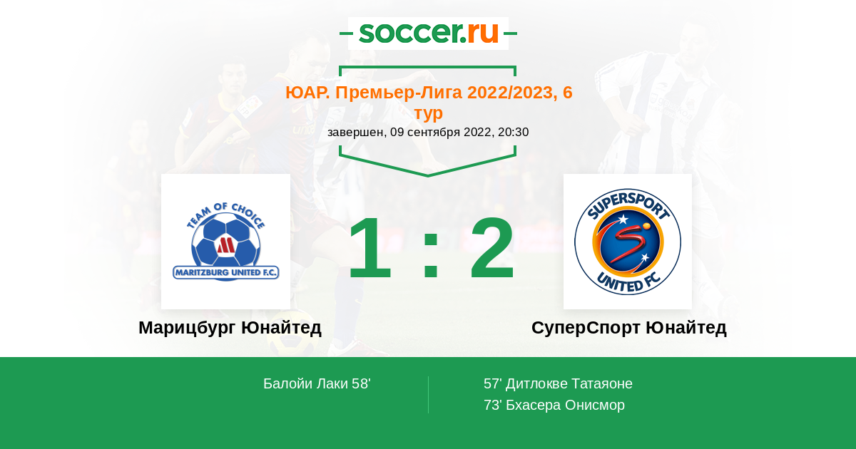 Протокол матча Марицбург Юнайтед против СуперСпорт Юнайтед