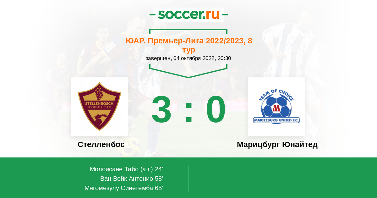 Протокол матча Стелленбос против Марицбург Юнайтед