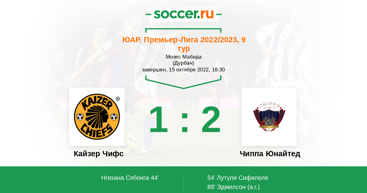 Протокол матча Кайзер Чифс против Чиппа Юнайтед