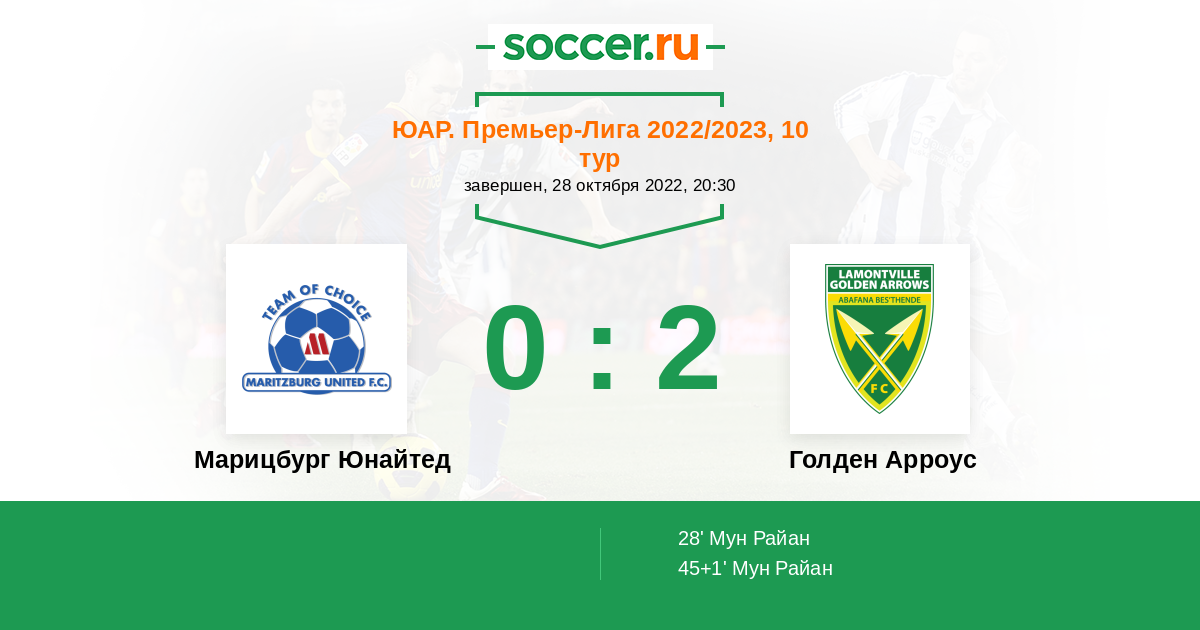 Протокол матча Марицбург Юнайтед против Голден Арроус