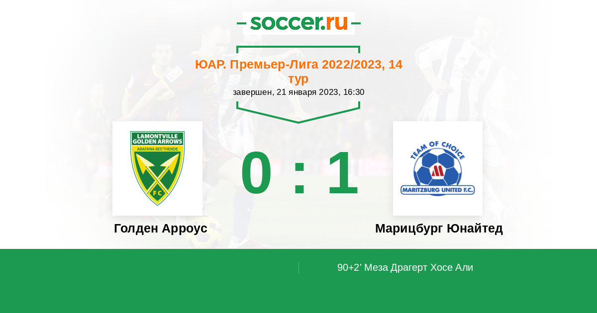 Протокол матча Голден Арроус против Марицбург Юнайтед