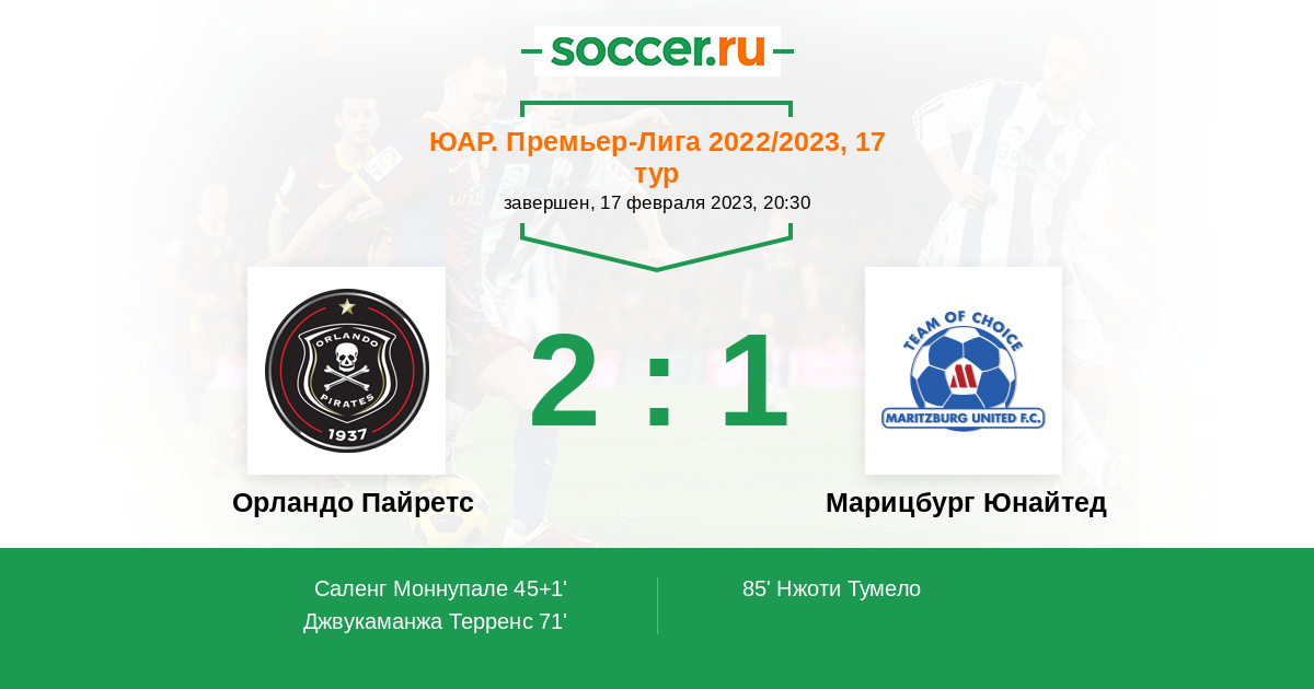 Протокол матча Орландо Пайретс против Марицбург Юнайтед