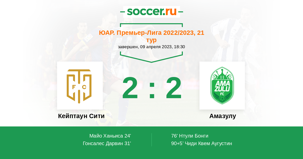 76' (2:1) Нтули Бонги (7) (Ханамуб Риаан (14))