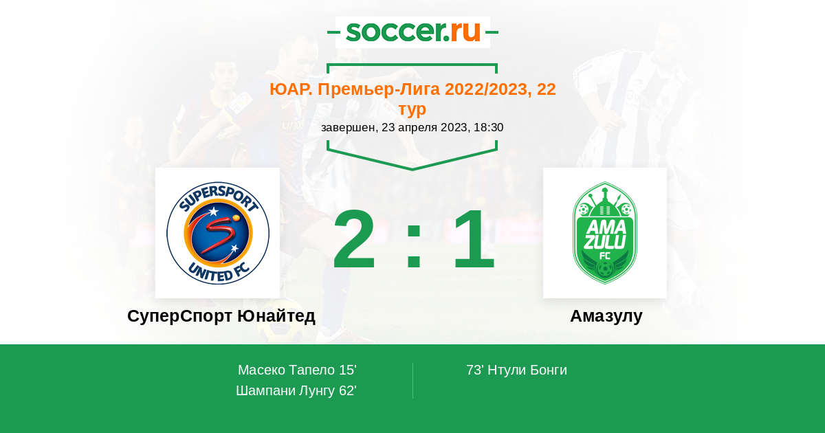 Протокол матча СуперСпорт Юнайтед против Амазулу
