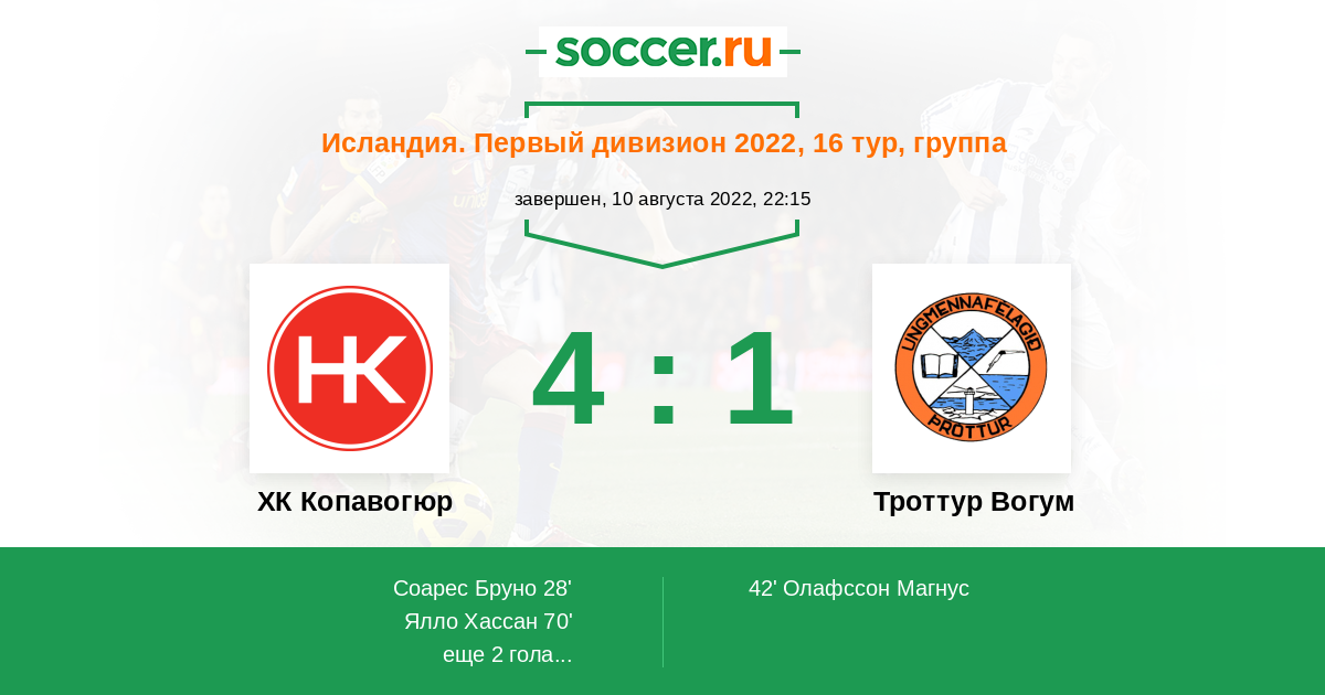73' (3:1) Мартейнссон Асгейр