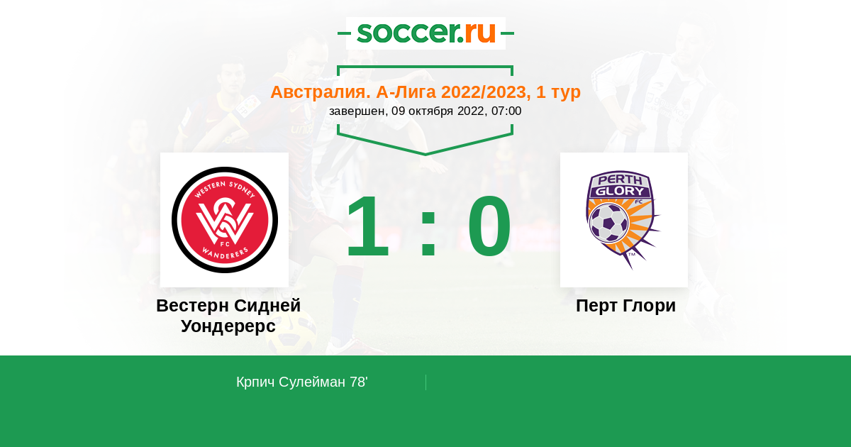 Протокол матча Вестерн Сидней Уондерерс против Перт Глори