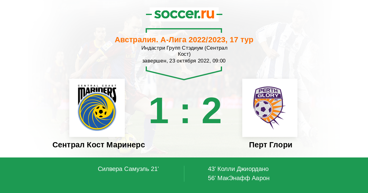 Протокол матча Сентрал Кост Маринерс против Перт Глори