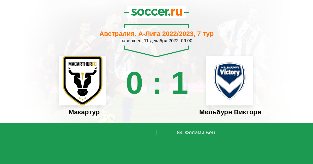 Протокол матча Макартур против Мельбурн Виктори