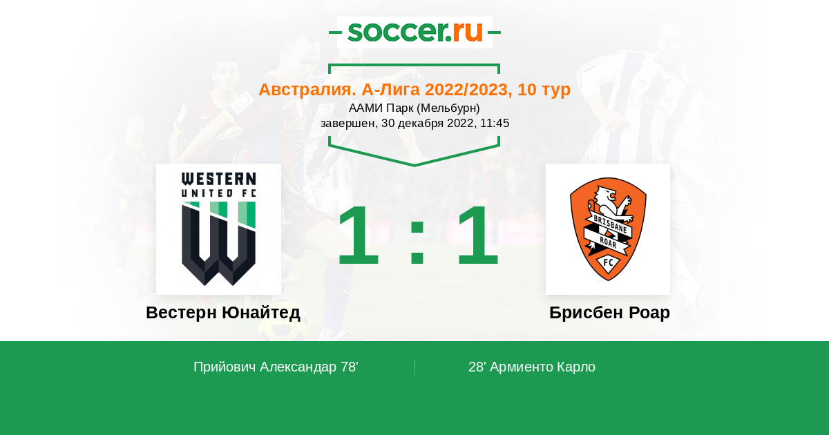 Протокол матча Вестерн Юнайтед против Брисбен Роар