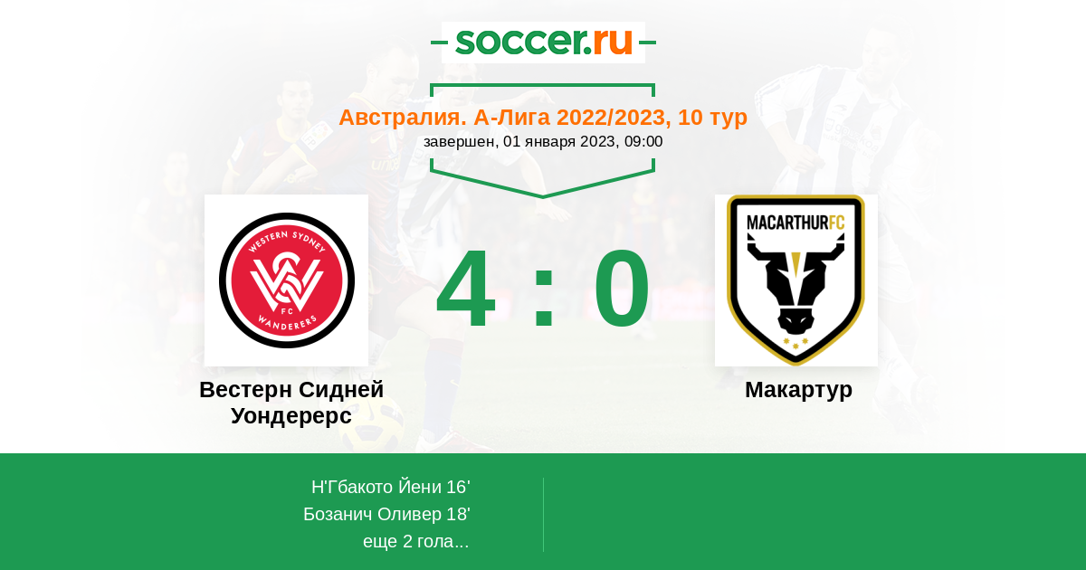 Протокол матча Вестерн Сидней Уондерерс против Макартур