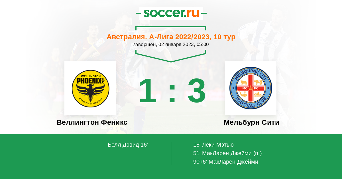 Протокол матча Веллингтон Феникс против Мельбурн Сити