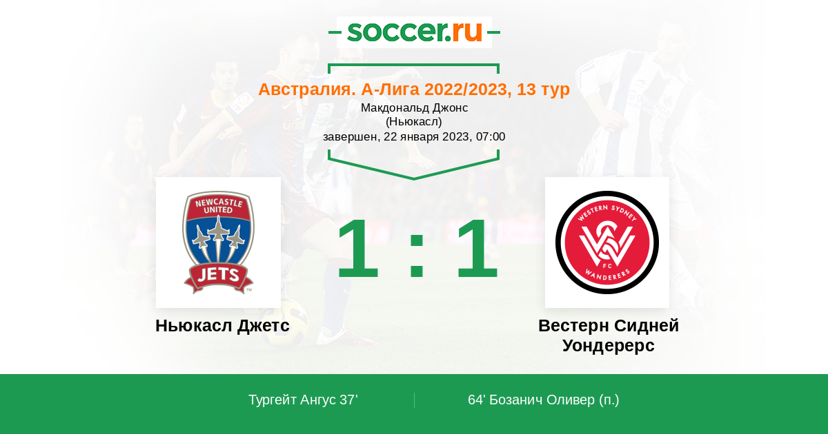 Протокол матча Ньюкасл Джетс против Вестерн Сидней Уондерерс
