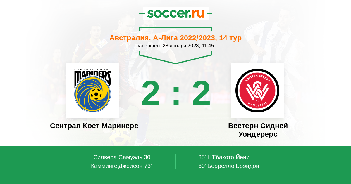 Протокол матча Сентрал Кост Маринерс против Вестерн Сидней Уондерерс