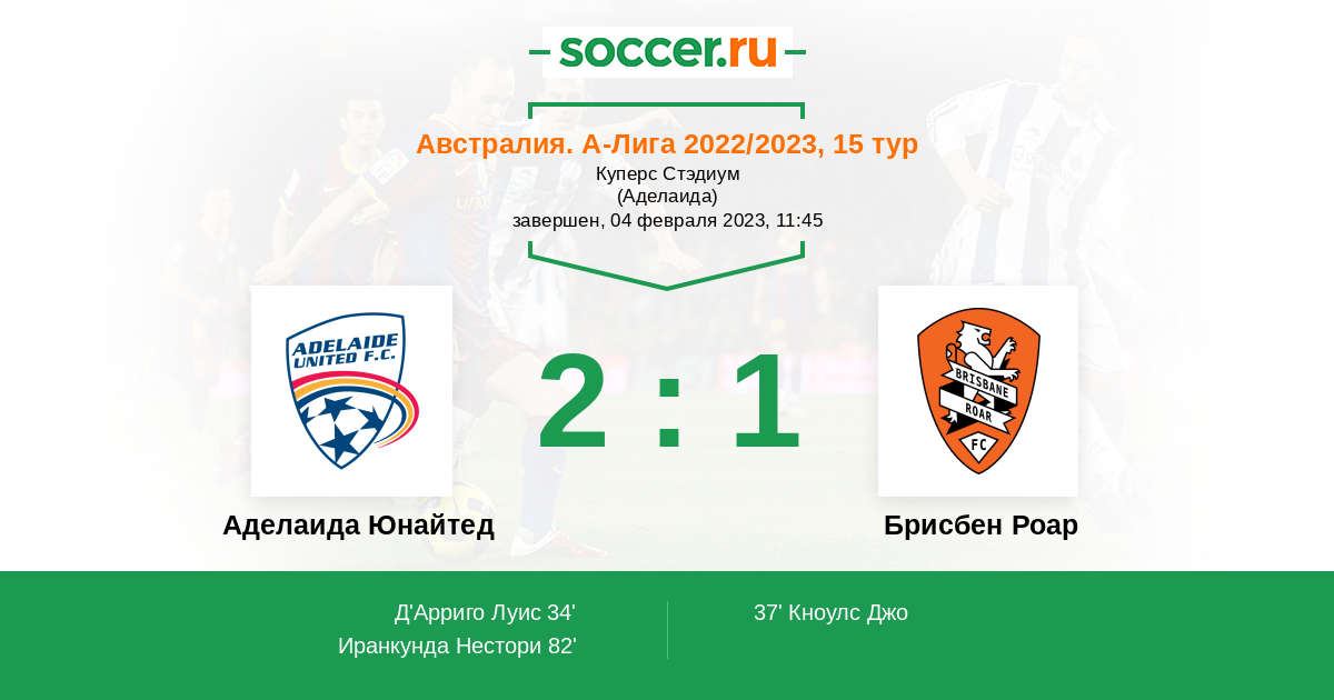 Протокол матча Аделаида Юнайтед против Брисбен Роар