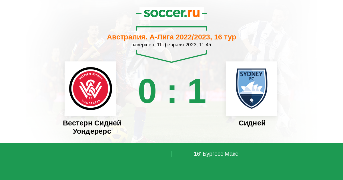 Протокол матча Вестерн Сидней Уондерерс против Сидней