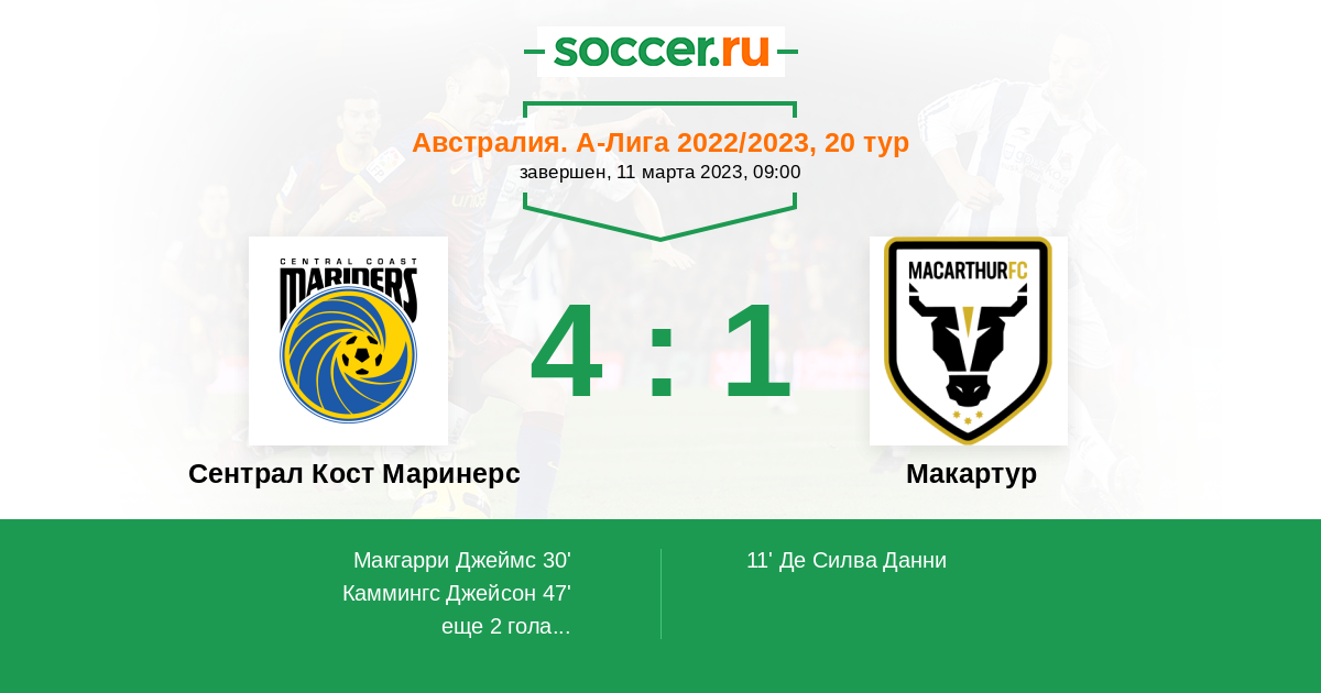 Протокол матча Сентрал Кост Маринерс против Макартур