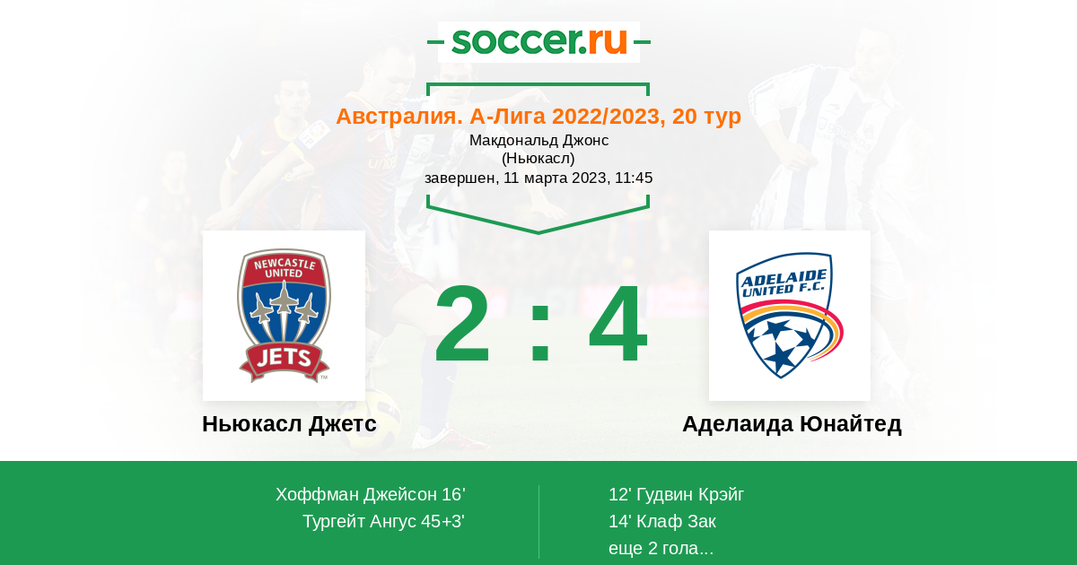 Протокол матча Ньюкасл Джетс против Аделаида Юнайтед