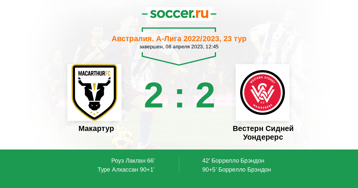 Протокол матча Макартур против Вестерн Сидней Уондерерс