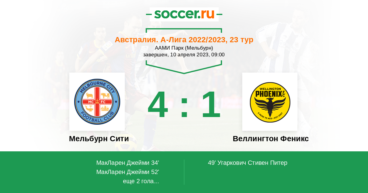 Протокол матча Мельбурн Сити против Веллингтон Феникс