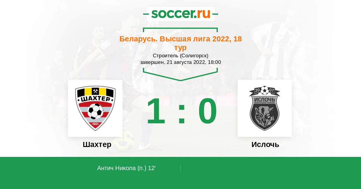 Протокол матча Шахтер против Ислочь