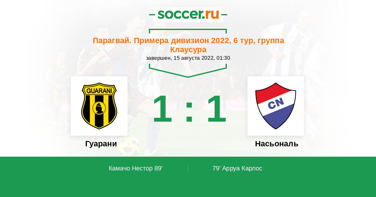 Протокол матча Гуарани против Насьональ