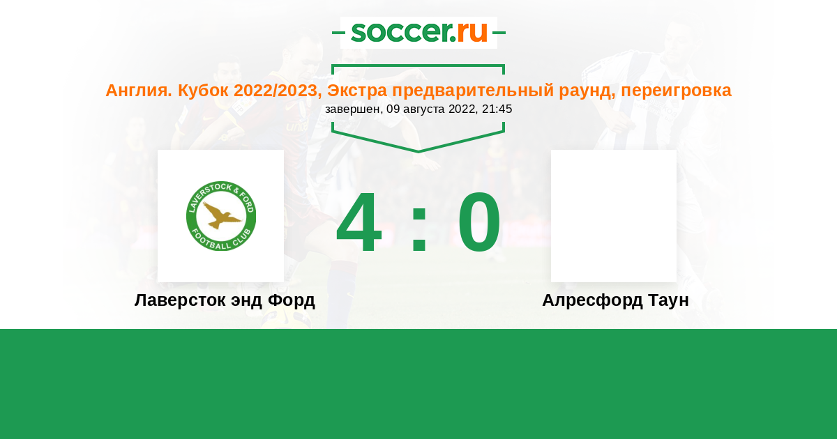 История матча Лаверсток энд Форд против Алресфорд Таун
