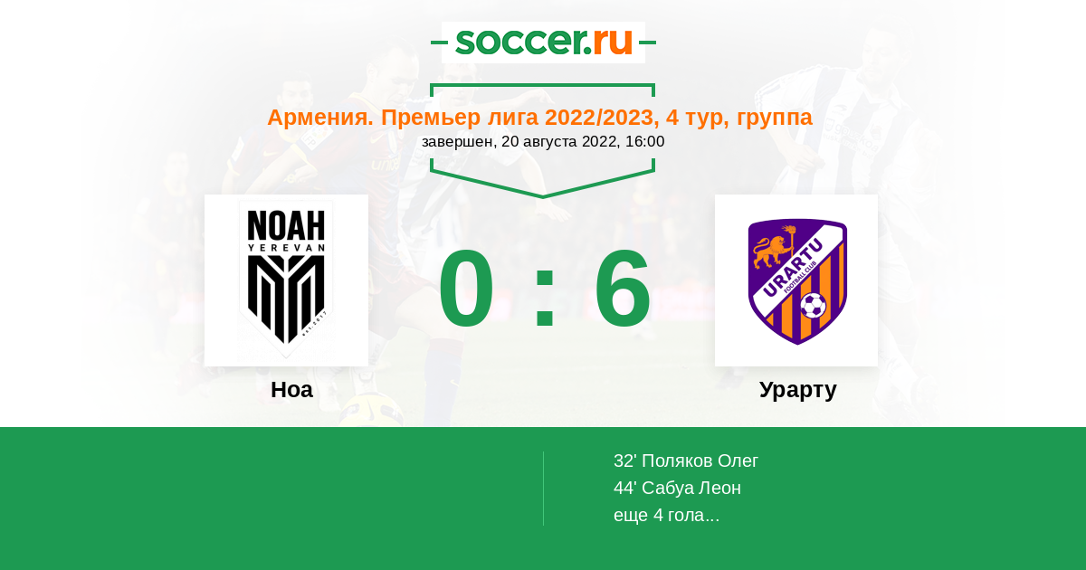 Протокол матча Ноа против Урарту
