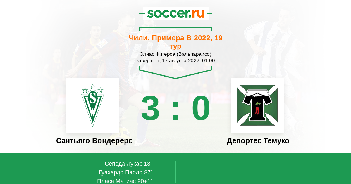 Протокол матча Сантьяго Вондерерс против Депортес Темуко