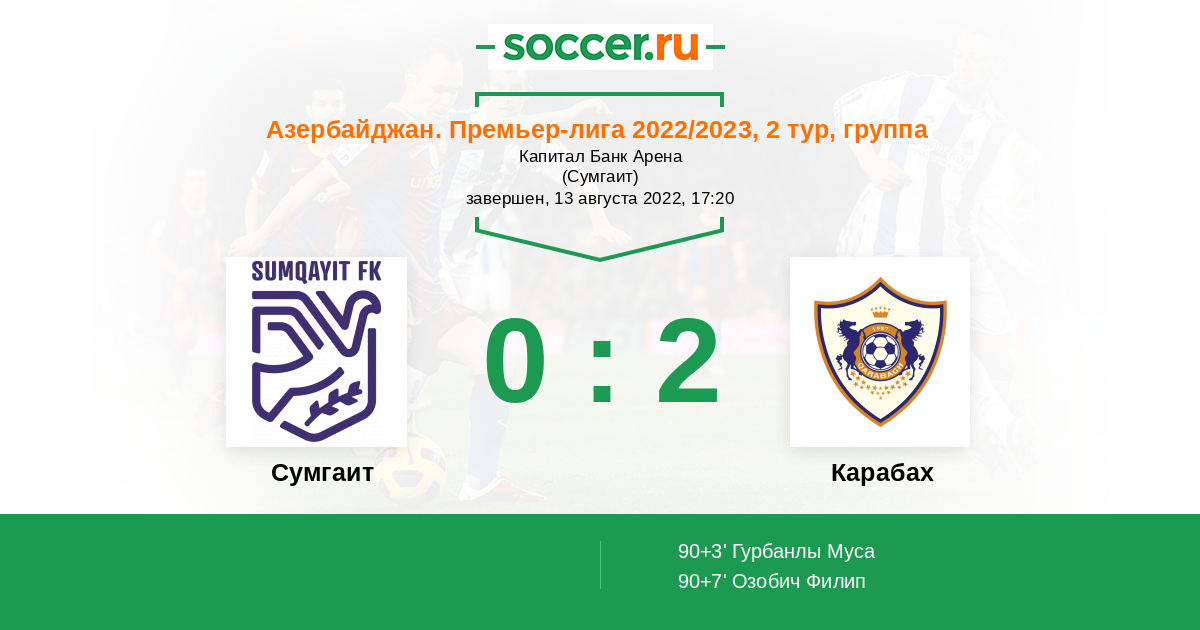 Протокол матча Сумгаит против Карабах