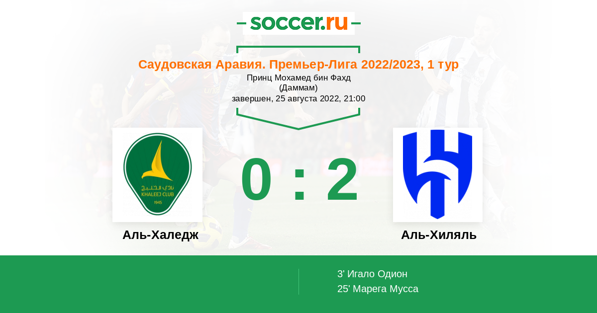 Протокол матча Аль-Халедж против Аль-Хиляль