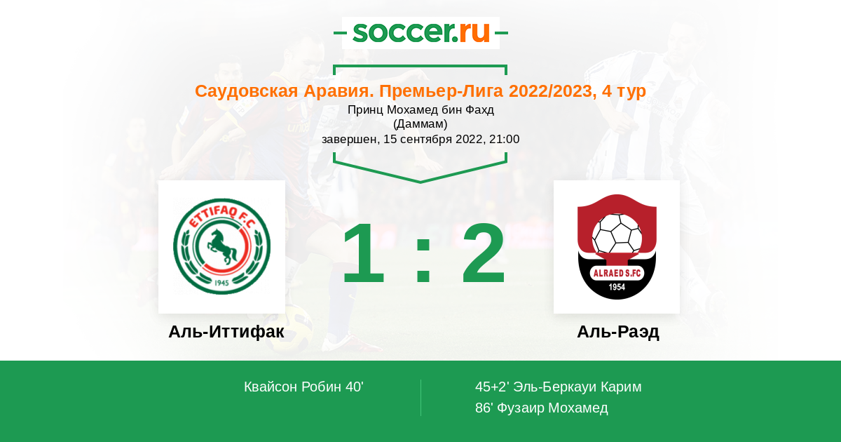 40' (1:0) Квайсон Робин (99) (Аль-Мовалад Саид (2))