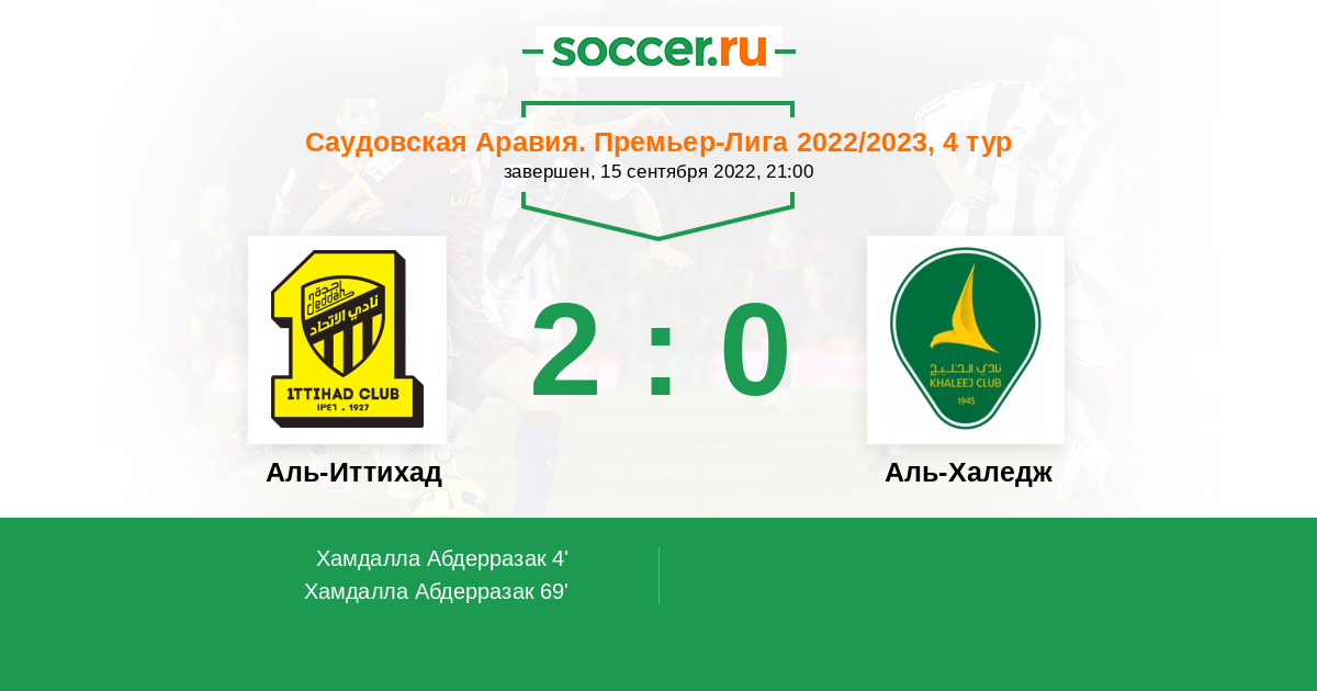 Протокол матча Аль-Иттихад против Аль-Халедж