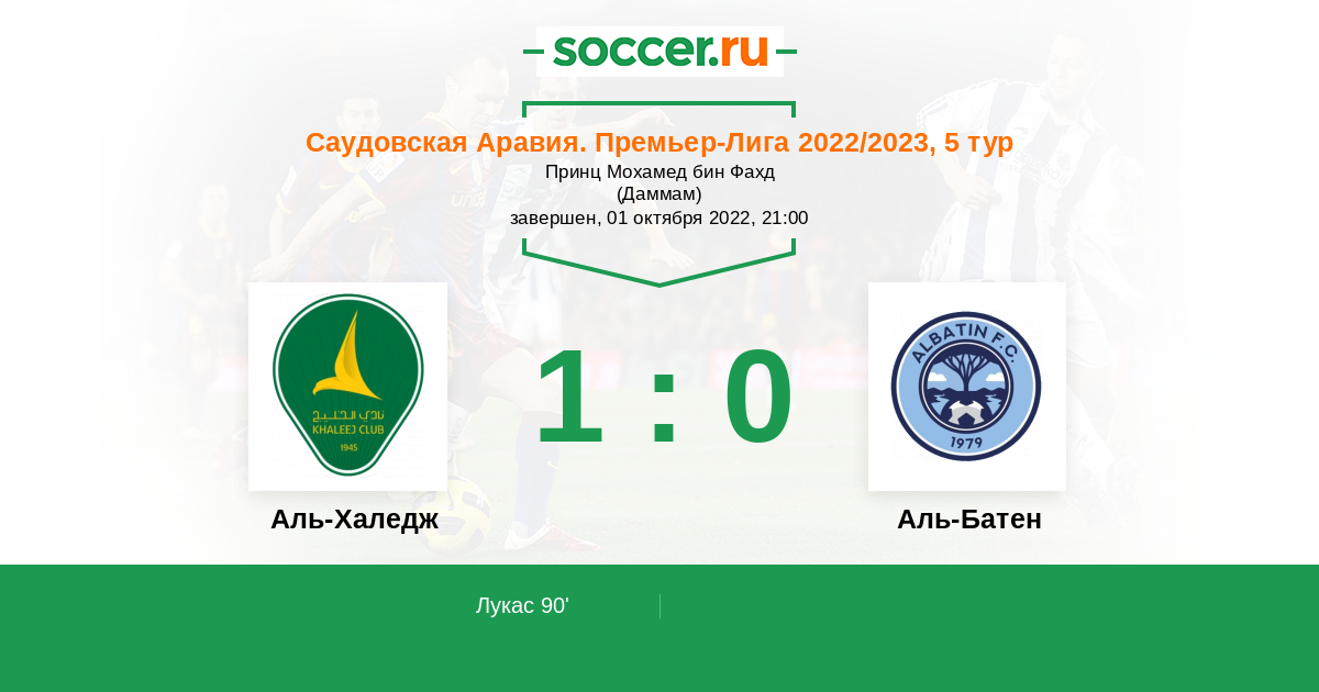 Гол90' (1:0) Лукас (8) (Аль-Аббас Салех (14))