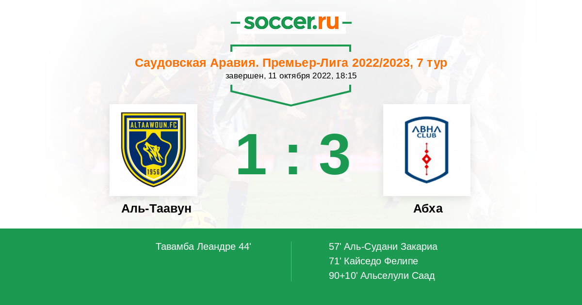 44' (1:0) Тавамба Леандре (3) (Аль-Рашиди Фахад (7))