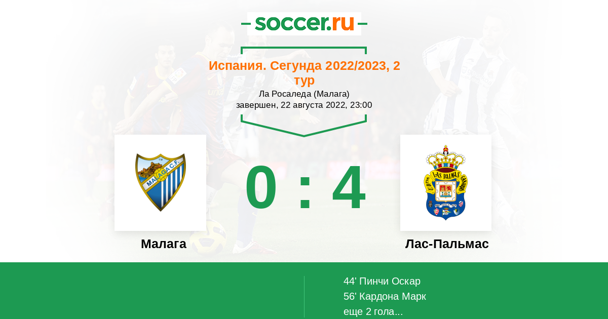 Протокол матча Малага против Лас-Пальмас