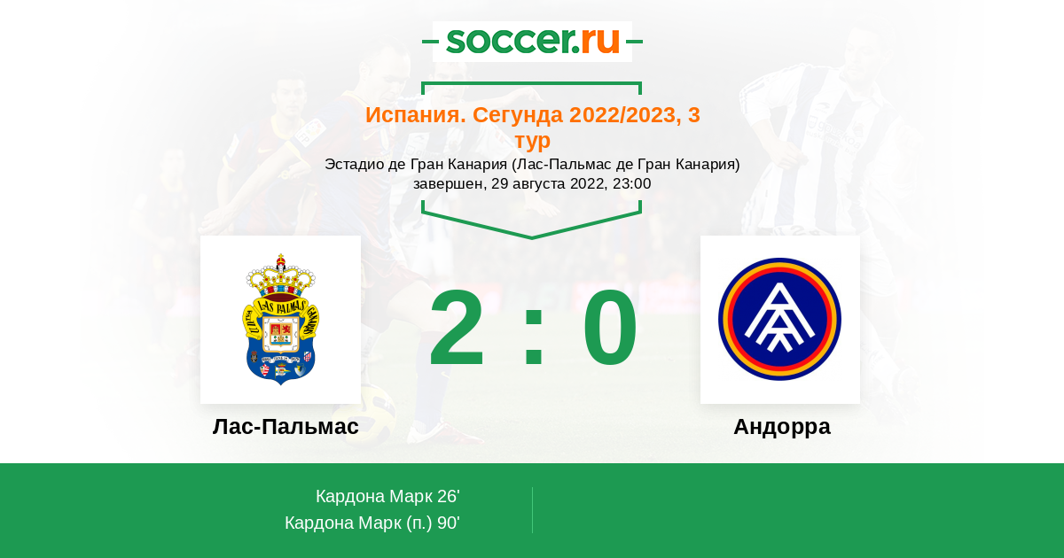В предстоящем матче 3 - го тура испанской Сегунды между командами Там - Пальмас и ФК Андорра , явным фаворитом на победу является команда хозяев Там - Пальмас , так как они и играют убедительнее.