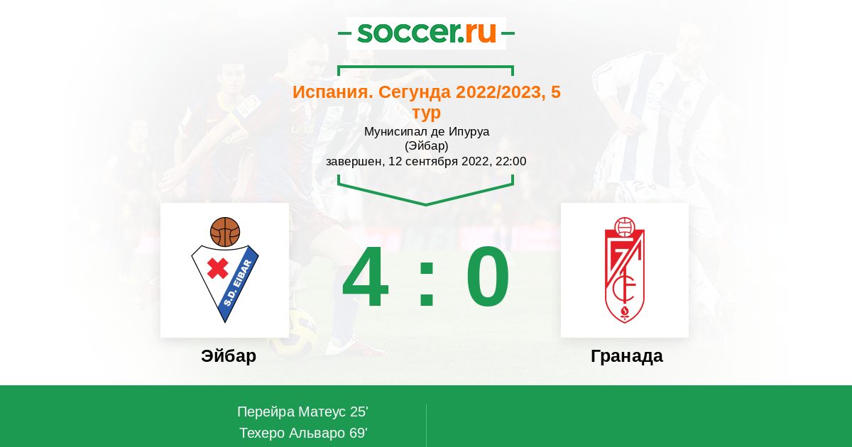 Протокол матча Эйбар против Гранада