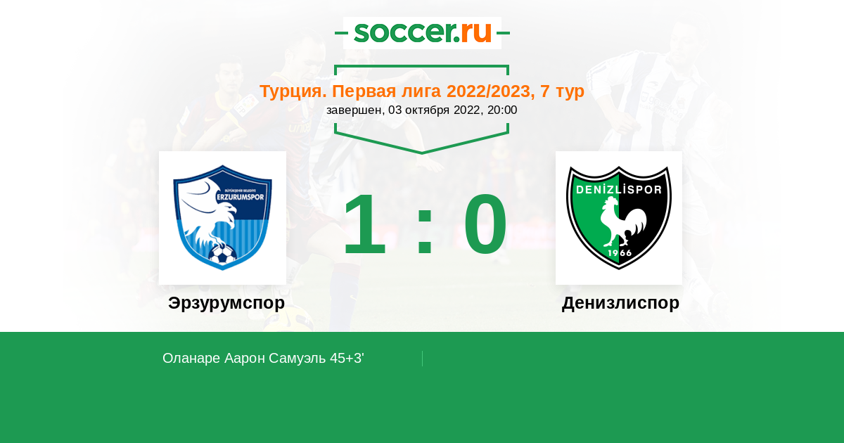 45+3' (1:0) Оланаре Аарон Самуэль (25) (Овачикли Орхан (53))