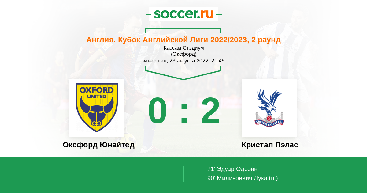 Протокол матча Оксфорд Юнайтед против Кристал Пэлас