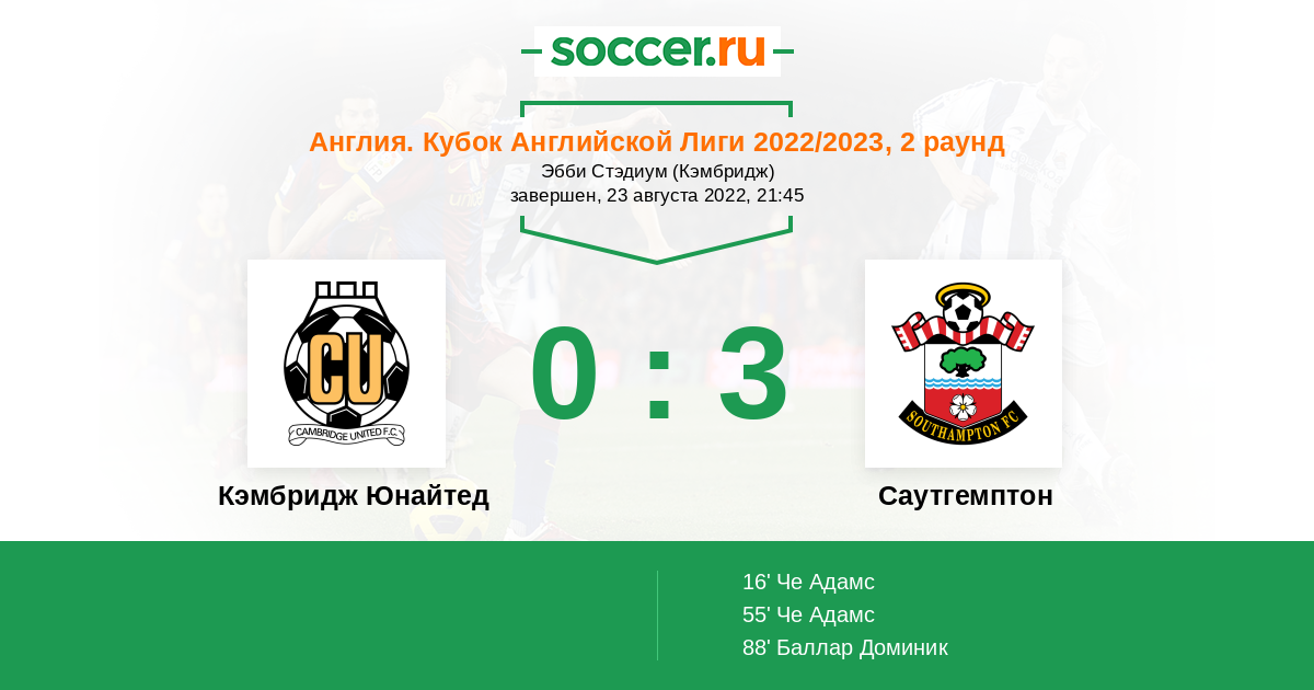 Протокол матча Кэмбридж Юнайтед против Саутгемптон